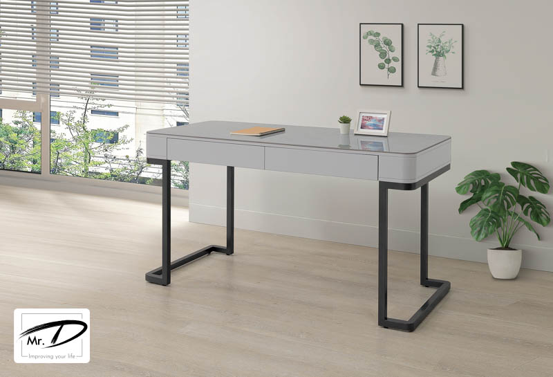 寬140×深60×高76cm 1. 環保MDF全包覆材質 2. 優耐坦耐磨塗裝 3. 不銹鋼金屬腳座經 深古銅色塗裝 4. 桌面採6mm岩板桌面