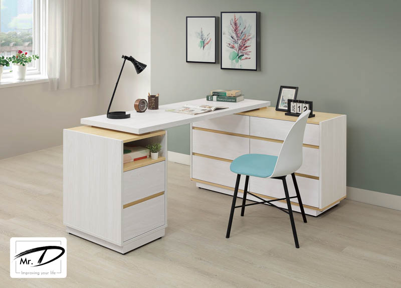 整組:寬150~190×深120×高75cm L桌:寬150×深55×高75cm 六抽側櫃:寬120×深40×高70cm 1. 採全A級環保木心板包含抽牆, 經立體木紋耐磨塗裝 2. 採系統式1.0mmABS厚封邊處理 3. 採斜邊無把手設計 4. 台灣製造