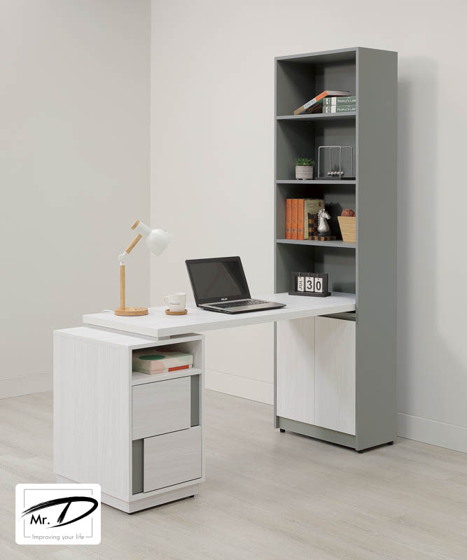 書櫃:寬58.5×深30×高202cm L桌:寬150~180×深54×高75cm 1. 採全A級環保木心板包含抽牆, 經立體木紋耐磨塗裝 2. 採系統式1.0mmABS厚封邊處理 3. 採斜邊無把手設計 4. 台灣製造