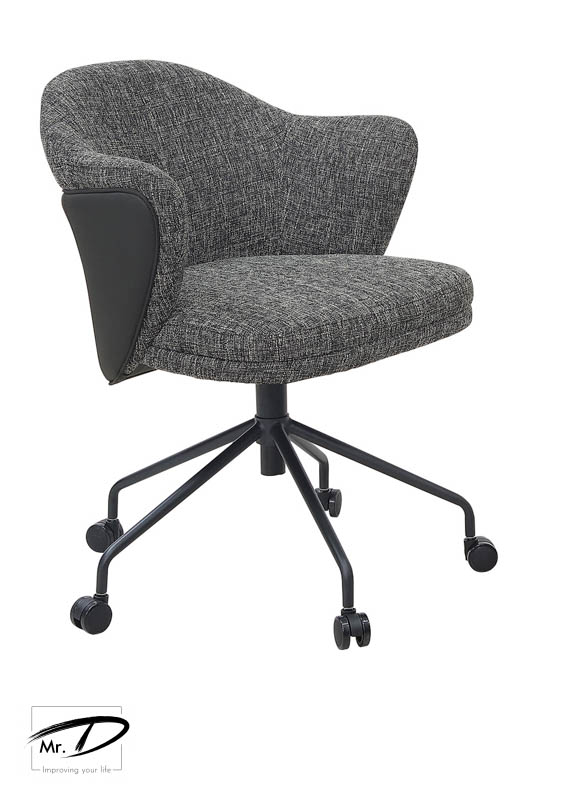 寬64×深58×高86cm 1. 高密度泡棉+多層實木彎板 2. 透氣皮革/粗紋亞麻布 3. 椅架採金屬黑色烤漆處理 4. 油壓升降桿及活動輪