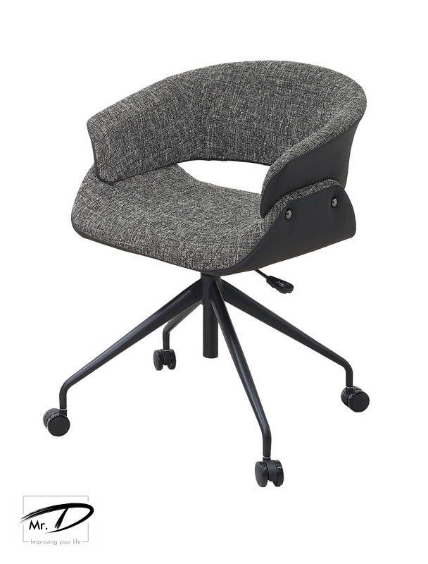 寬64×深57×高76cm 1. 高密度泡棉+多層實木彎板 2. 透氣皮革/粗紋亞麻布 3. 椅架採金屬黑色烤漆處理 4. 油壓升降桿及活動輪