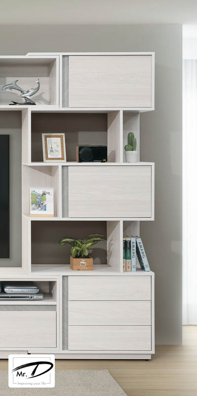 寬80×深40×高197cm 1. 採全環保木心板包含抽牆,經立體木紋耐磨塗裝 2. 抽屜飾條水泥紋美耐皿耐熱材質 3. 採系統式1.0mmABS厚封邊處理 4. 台灣製造