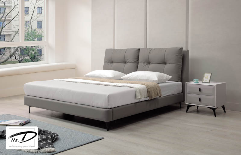 寬152×深213×高115cm 1. 床枕採高級頭層牛皮/床架乳膠皮革材質 2. 實木骨架+高密度泡棉 3. 採15cm金屬腳座 4. 採平整式包覆床底