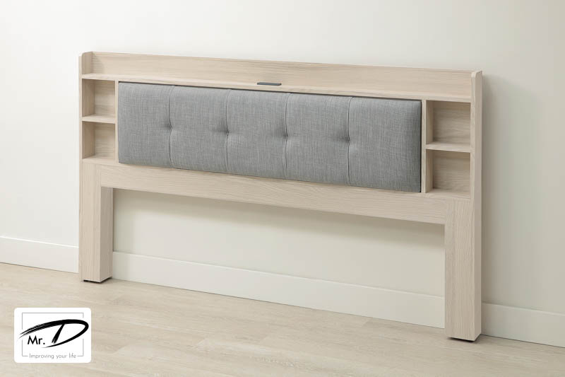 寬151.5×深12×高105.5cm 1. 正面、側板與抽牆採用台灣製造A級環保木心板,專利技術同調木紋鋼刷壓紋,猶如實木質感 2. 床頭枕採台灣製造亞麻布+高密度泡綿,經手工精製車縫處理 3. 背板採用美背處理 4. 台灣製造 5. 床頭片附安全插座