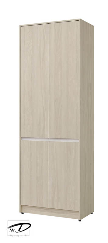 寬80×深59.5×高236cm 1. 正面、檯面、側板、抽牆採用台灣製造A級環保木心板, 專利技術同調木紋鋼刷壓紋,猶如實木質感 2. 衣櫥採1.0mmABS材質厚封邊處理,質感細緻 3.背板採用美背處理 4. 台灣製造 5.門片採用油壓緩衝鉸鍊