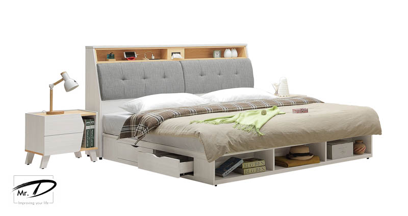 寬182×深30×高108cm 床頭附安全插座 頭枕掀開可置物 1. 正面、檯面、側板、抽牆採用台灣製造A級環保木心板,採專利技術同調木紋鋼刷壓紋,猶如實木質感 2. 採用系統式1.0mm厚ABS材質封邊處理,延長使用週期,具耐衝擊、高鋼性特質 3. 床頭枕採台灣製亞麻布+高密度泡棉,經手工精緻車縫 4. 背板採用內崁式美背處理,檯面與側板無背板接縫,美觀又細緻 5. 台灣製造
