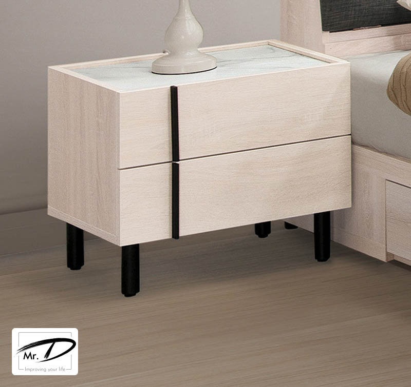 寬45×深42×高42cm 1. 正面、檯面、側板採用台灣製造高級環保木心板 2. 桌面採美耐皿石紋材質,具耐磨、耐熱特性 3. 專利技術同調木紋鋼刷壓紋,猶如實木質感 4. 採用系統式1.0mm厚ABS材質封邊處理,質感細緻延長使用週期,具環保、耐衝擊、耐磨性、高鋼性特質 5. 腳座採用高12cm金屬圓管,經黑色粉體烤漆 6. 抽屜採用台灣製鋼珠滑軌 7. 採金屬黑色烤漆把手,背板採用美背處理 8. 台灣製造