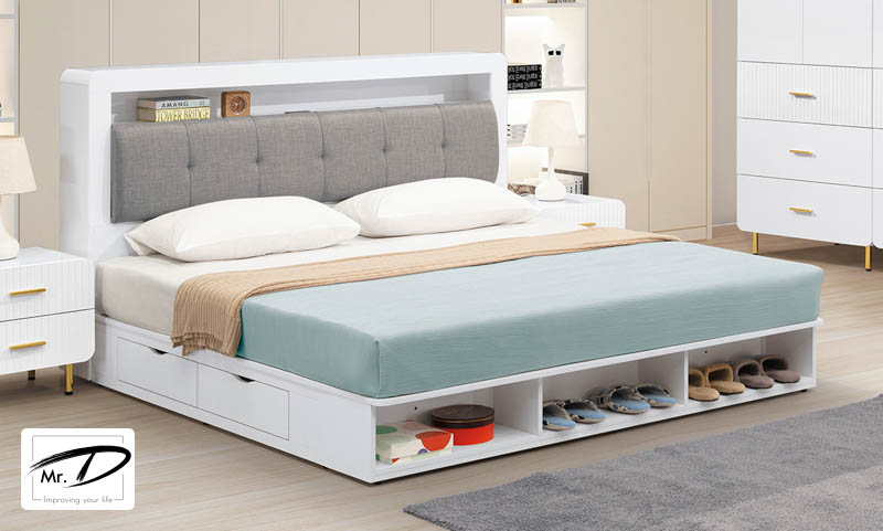 寬152×深26×高113cm 頭枕可掀開置物 床頭附安全插座 1. 正面採MDF材質經CNC雕刻,白色烤漆全包覆處理 2. 檯面、側板與抽牆採用台灣製造高級環保木心板 3. 專利技術同調木紋鋼刷壓紋,猶如實木質感 4. 採用系統式1.0mm厚ABS材質封邊處理,質感細緻延長使用週期,具環保、耐衝擊、耐磨性、高鋼性特質 5. 床頭枕採台製防潑水亞麻布+高密度泡棉,經手工車縫精製 6. 背板採用美背處理 7. 台灣製造