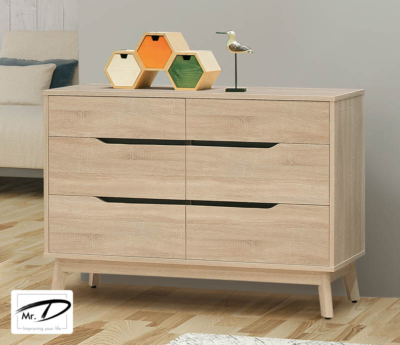 寬110×深40×高80cm 1. 正面、檯面、側板、抽牆採用台灣製造A級環保木心板 2. 專利技術同調木紋鋼刷壓紋,猶如實木質感 3. 腳座採12cm高實木腳座,施以桶身相同木紋,整體質感提升 4. 抽屜採用台灣製鋼珠滑軌 5. 台灣製造