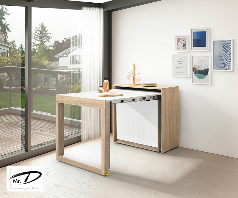 B2052 427-03 雨果2.7尺伸縮功能桌收納櫃(原切/白)