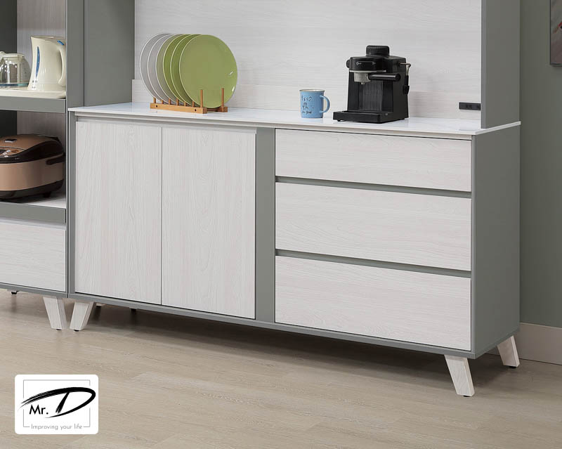 寬160×深40×高83cm 門內附一隔版 1. 環保木心板包含抽牆,經立體木紋耐磨塗裝 2. 桌面採12mm亮面雪山石岩板面,具耐磨、耐熱特性 3. 採1.0mm系統式ABS封邊 4. 12cm木心板腳座,同色處理 5. 台灣製造