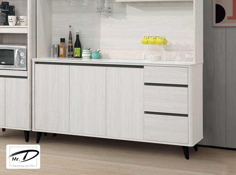 寬160×深40×高83cm 門內皆附一隔版 1. 環保木心板包含抽牆,經立體木紋耐磨塗裝 2. 桌面採12mm亮面雪山石岩板面,具耐磨、耐熱特性 3. 採1.0mm系統式ABS封邊,櫃體採3cm圓角設計 4. 黑色粉體烤漆金屬腳座 5. 台灣製造