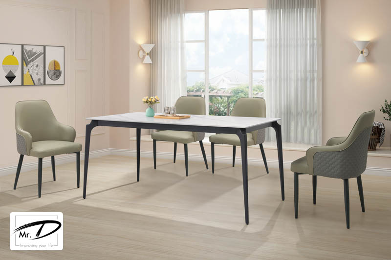 寬160×深80×高74cm 1. 採厚12mm平光雪山白人工強化岩板桌面 2. 金屬鐵管加工腳架 3. 黑鐵砂防鏽漆處理