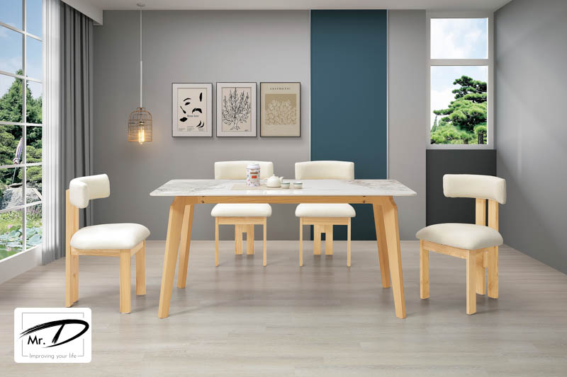 B2243 516-03 萊瑞5.3尺原木岩板餐桌