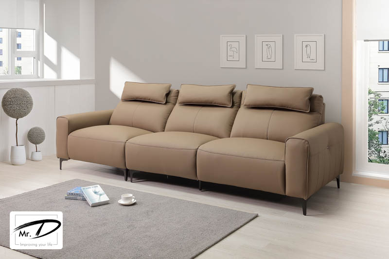 寬280×深102×高98cm 1. 實木骨架+高密度泡棉 2. 採接觸面牛皮+側面與底部乳膠皮革