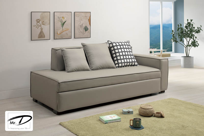 寬211×深90×高80cm 床尺寸:寬190×深140×高43cm 1. 鋼管骨架經烤漆處理 2. 實木骨架+高密度泡棉 3. 貓抓皮透氣皮革