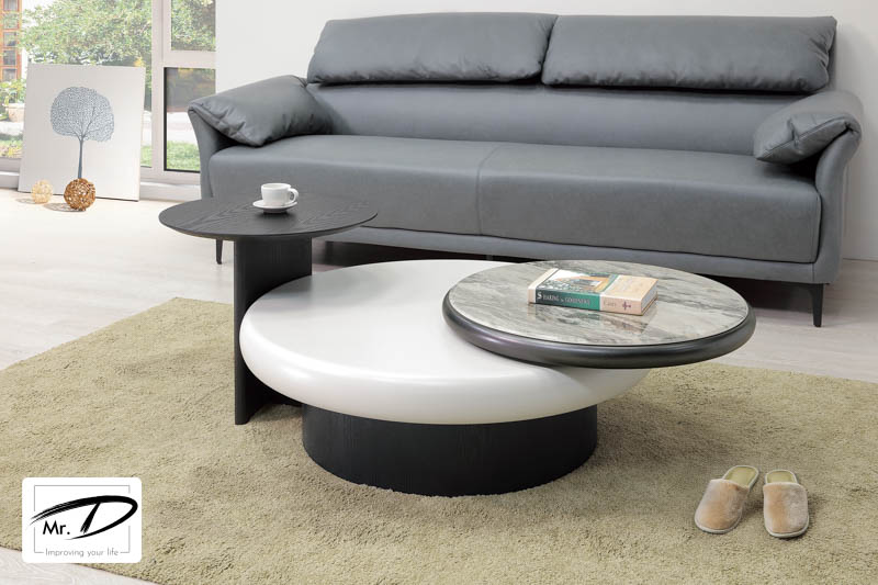 大圓:Ø84×高28cm 中圓:Ø60×高33cm 小圓:Ø47×高44cm 一體式無法分離使用 大理石檯面置放高溫物品需墊隔熱墊保護檯面 1. 環保MDF全包覆材質 2. 實木皮包覆及優耐坦耐磨烤漆塗裝 3. 旋轉桌面天然石基材經人工超晶石紋美化波麗漆處理