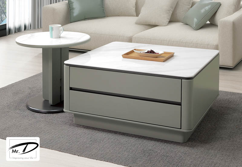 大茶几:寬80×深70×高40cm 小茶几:Ø50×高48cm (全組不可拆賣) 雙面造型,前後共二抽 大理石檯面置放高溫物品需墊隔熱墊保護檯面 1. 環保MDF全包覆材質 2. 優耐坦耐磨烤漆塗裝 3. 天然石基材經人工美化波麗漆處理