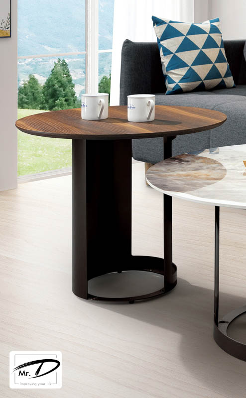 寬60×深60×高50cm 1. 採金屬腳架經黑鈦色電鍍 2. 大茶几面採亮面潘多拉12mm岩板具耐磨、耐熱特性 3. 小茶几面採MDF全包覆實木皮噴漆處理
