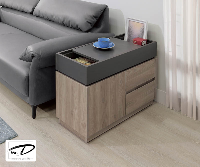 寬80×深35×高60cm 桌面可前後自由移動 側面二抽一門 1. A級環保木心板包含抽牆,經立體木紋耐磨塗裝 2. 採1.0mm系統式ABS封邊 3. 台灣製造