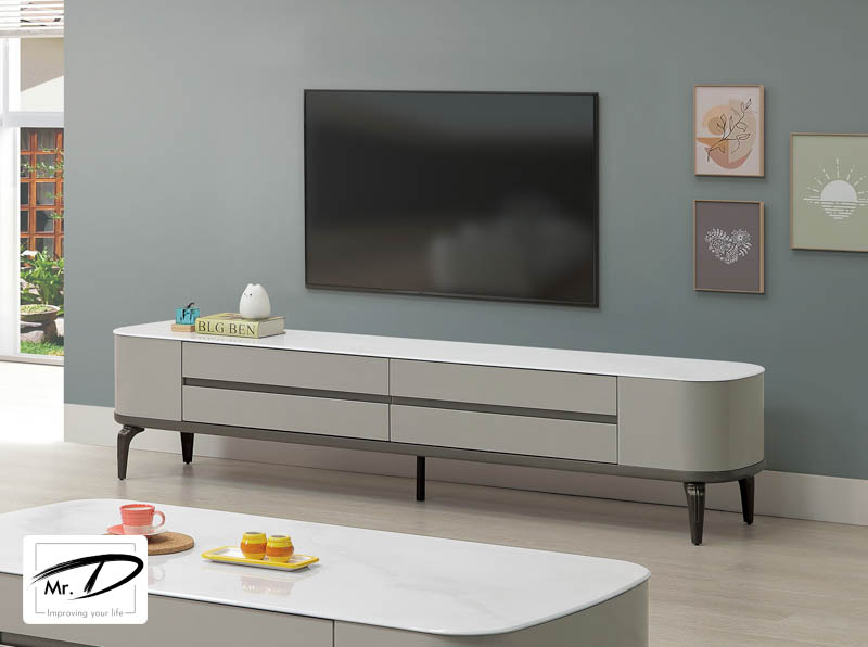 寬200×深36×高44cm 1. 環保MDF全包覆材質 2. 優耐坦耐磨塗裝 3. 金屬腳座經深古銅色烤漆 4. 桌面人工加工強化石紋面 5. 抽屜採全開放式緩衝滑軌