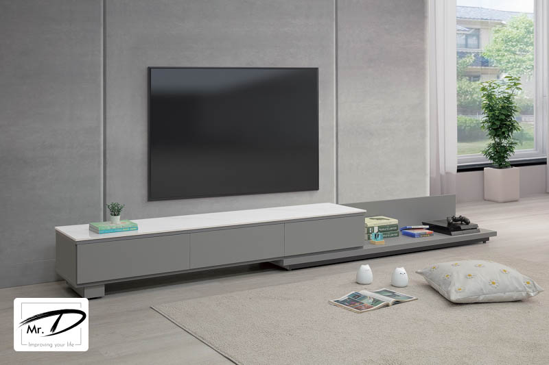寬180×深40×高33cm (伸縮:180~300cm) (可左右自由擺放) 1. A級環保木心板經立體木紋耐磨塗裝 2. 桌面採12mm亮面雪山石岩板面,具耐磨、耐熱特性 3. 採1.0mm系統式ABS封邊 4. 台灣製造