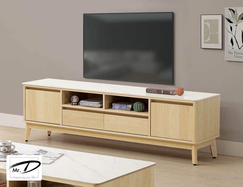 寬180×深40×高55.5cm 1. 環保木心板包含抽牆,經立體木紋耐磨塗裝 2. 桌面採12mm亮面雪山石岩版面,具耐磨、耐熱特性 3. 採1.0mm系統式ABS封邊 4. 天然實木腳座 5. 台灣製造