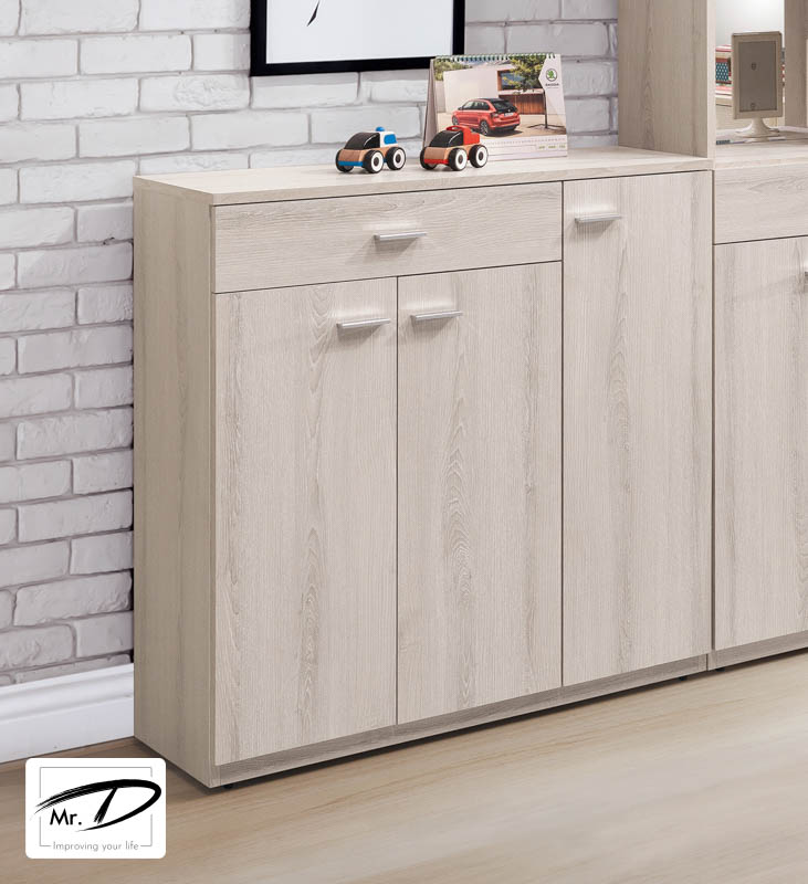 寬90×深32×高92cm 1. 正面、檯面、側板環保防蛀木心板 2. 耐磨木紋塗裝 3. 銀色金屬手把,5mm鏡面 4. 抽屜採用鋼珠滑軌、門片採油壓式鉸鍊 5. 台灣製造