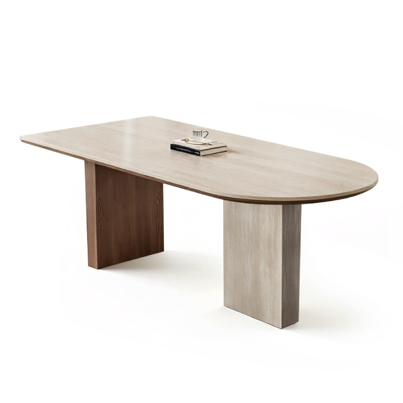 ◆桌面:厚度12mm米白洞石岩板+1.8cm實木底板(單邊半圓)